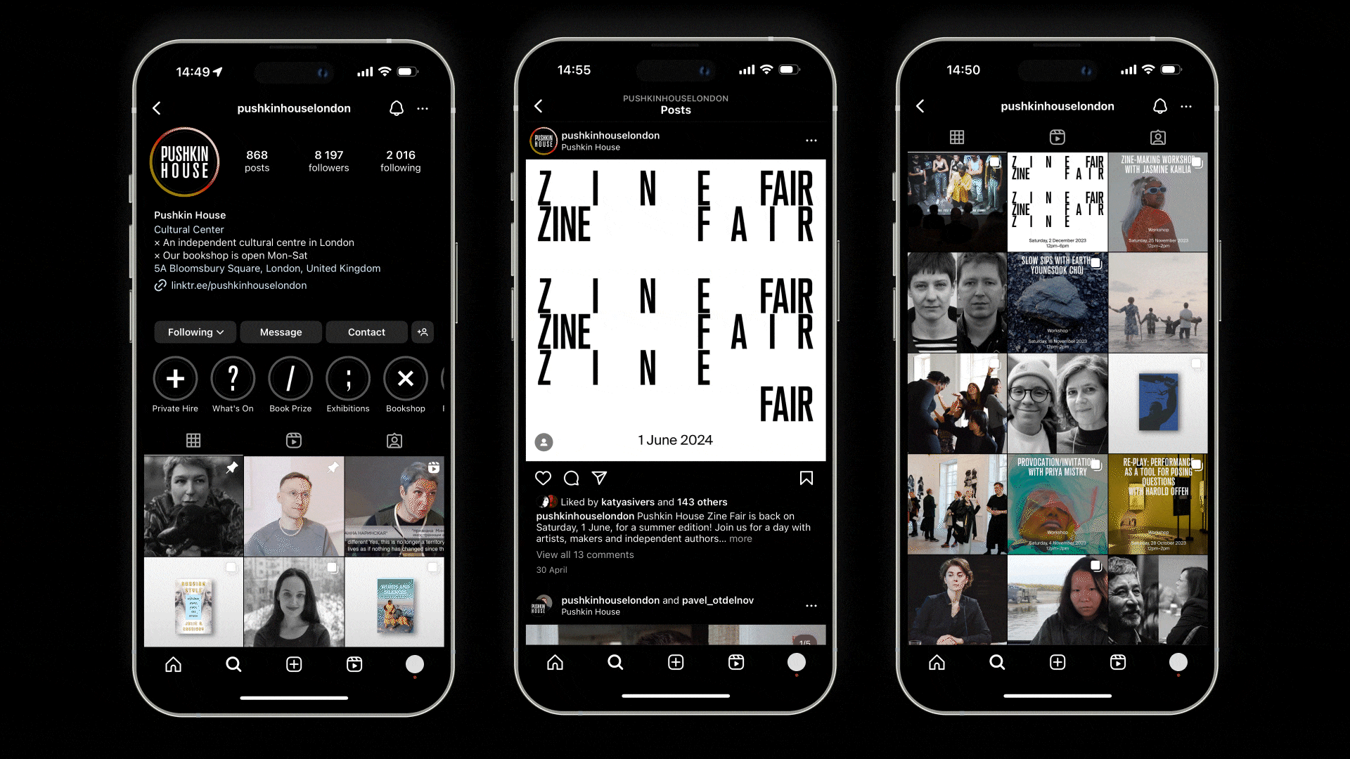 Pushkin House is an art, cultural and social space in London that explores, challenges and debates Russian culture and identity today. It is an open space for initiating critical enquiries and relationship-building. The visual identity of Pushkin House includes its website, social media presence, print materials, poster series and exhibition designs.