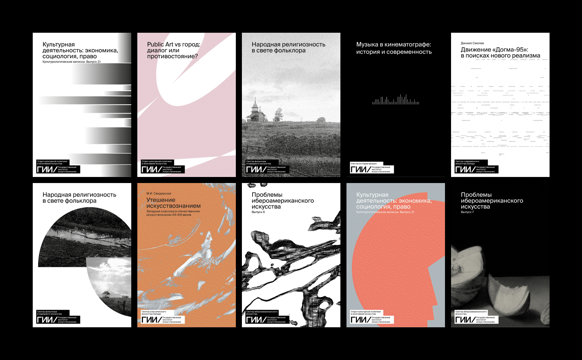 The State Institute for Art Studies' publishing programme features monographs, collective works, historical publications, and conference materials, with approximately 40 books published each year. Additionally, the design system includes two electronic peer-reviewed journals on the theory of music and cultural studies.